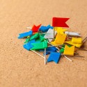 Caja de 25 unidades de chincheta con forma de bandera realizada en plástico y metal ideales para usar en tablones de anuncios de corcho o corcho tapizados.